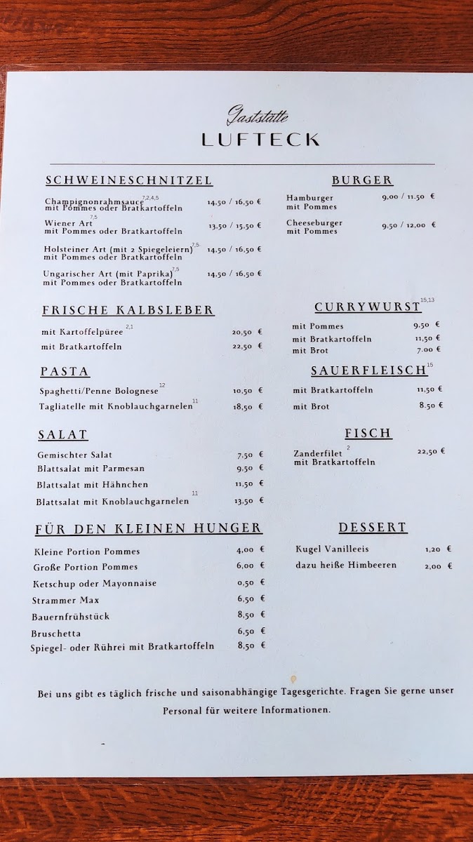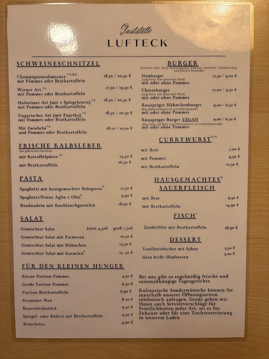 With such a diverse and satisfying menu, Gaststätte Lufteck offers something for everyone, from classic German specialties to lighter options, all made with fresh ingredients and traditional flavors.